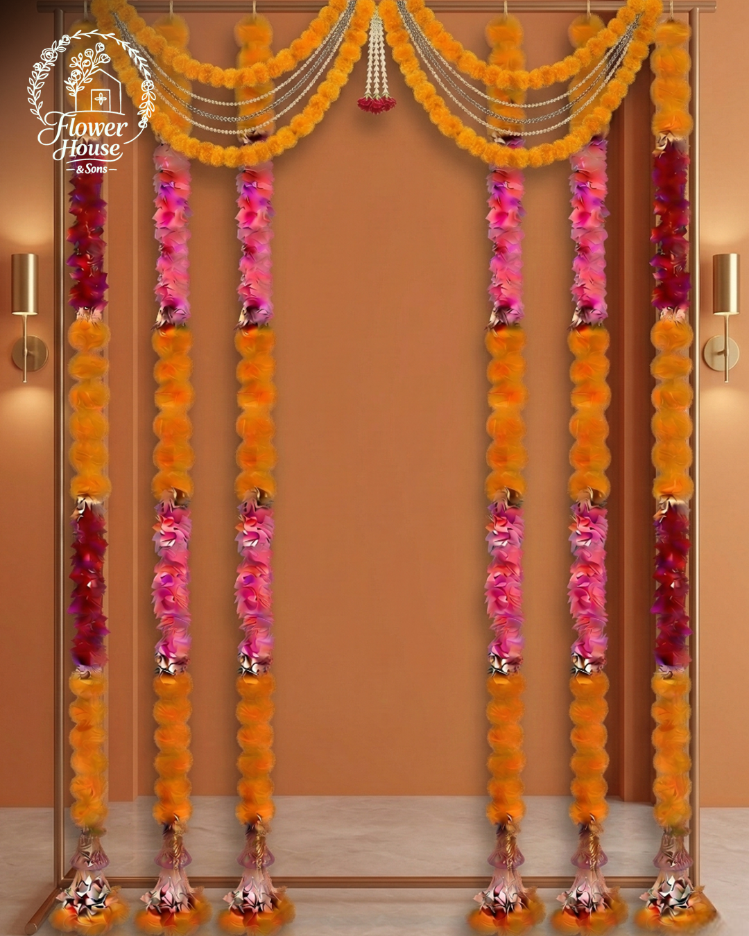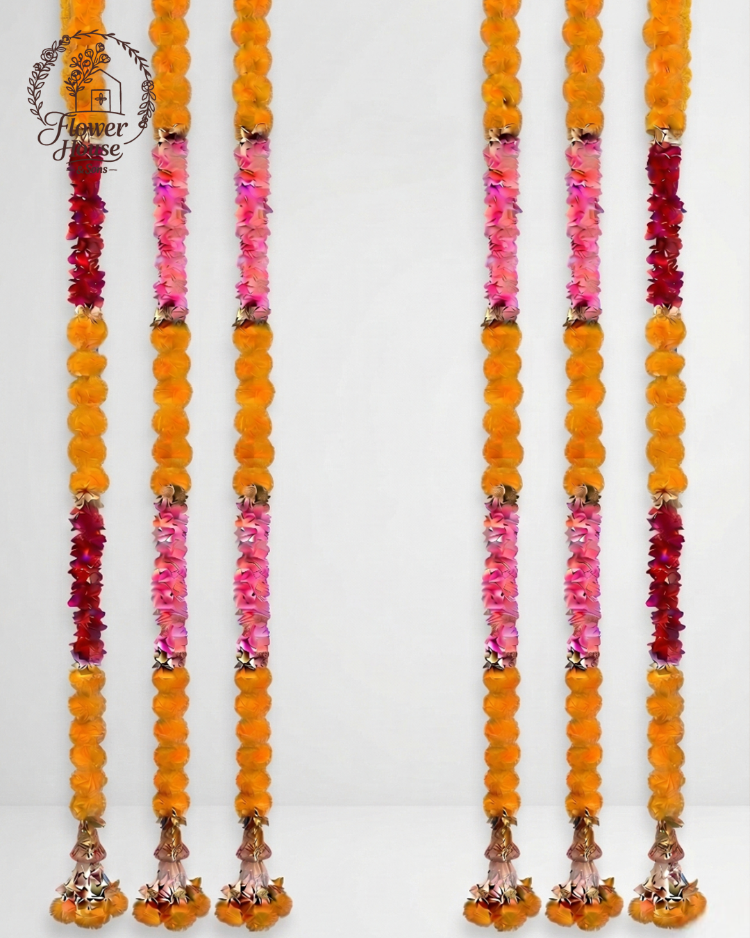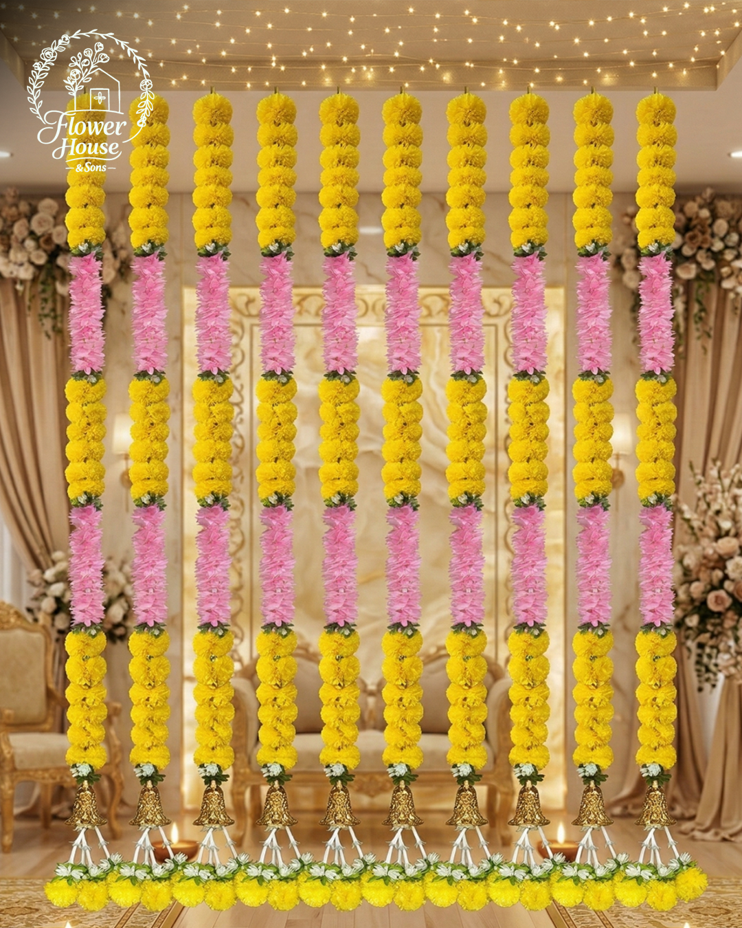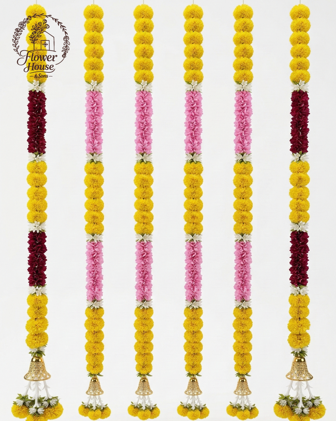 • Elegant Finish: Each garland is finished with a decorative golden bell-shaped cap and white floral hangings at the bottom for a premium look.